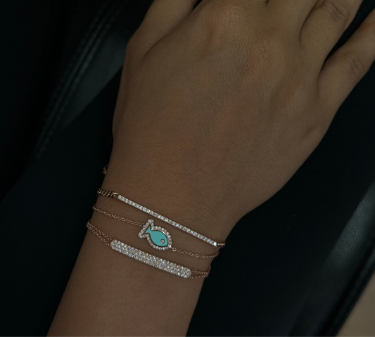 Row diamonds bracelet with Fish element