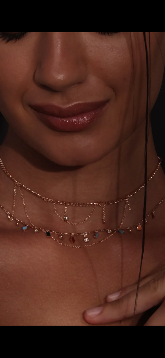 Diamonds trio enamel necklace